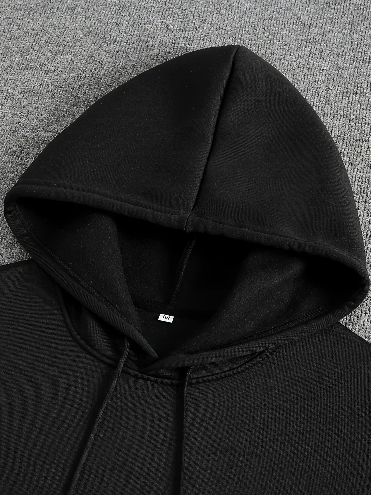🔥 2025 Men's Solid Hoodie – Sleek athleisure design with logo print for gym, street, or home versatility.